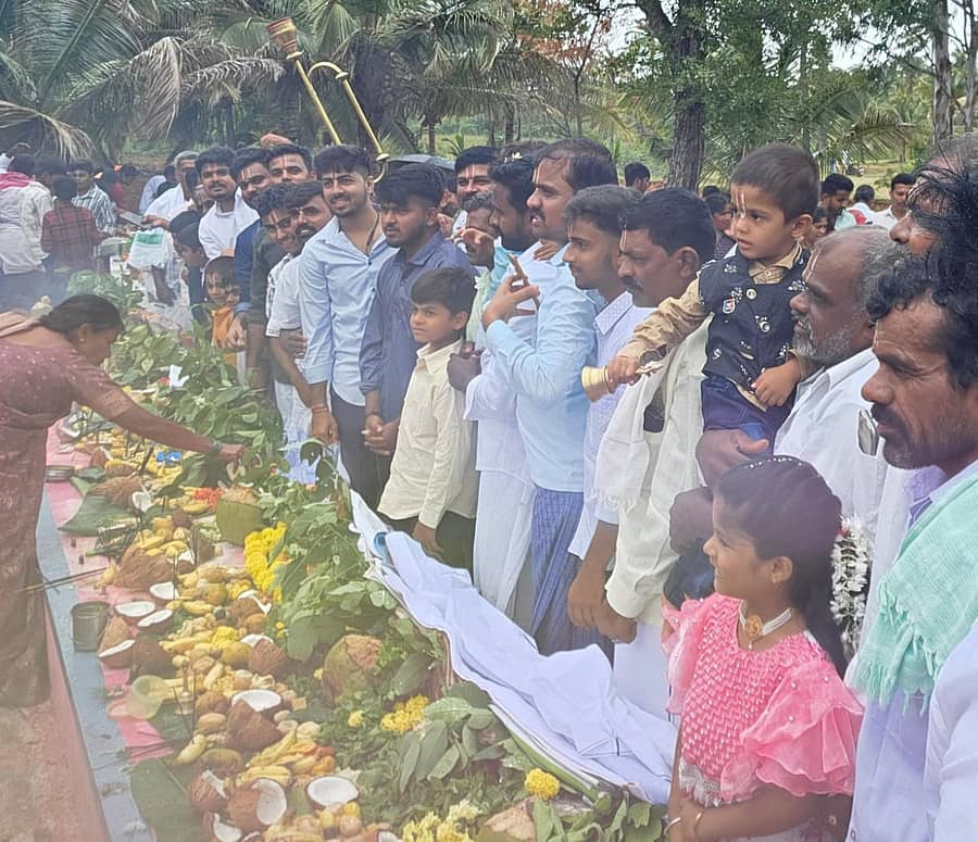 ಹೊಸದುರ್ಗ: ತಾಲ್ಲೂಕಿನ ಕಾರೇಹಳ್ಳಿಯಲ್ಲಿ ಪೂರ್ವಜರ ಸಮಾಧಿಗೆ ವಿಶೇಷ ಪೂಜೆ, ನೈವೇದ್ಯ (ಕಲ್ಲುಬಾಣ) ಅರ್ಪಿಸುವ ಮೂಲಕ ಭಾನುವಾರ ವಿಶೇಷವಾಗಿ ಏಕಾದಶಿ ಆಚರಿಸಲಾಯಿತು.