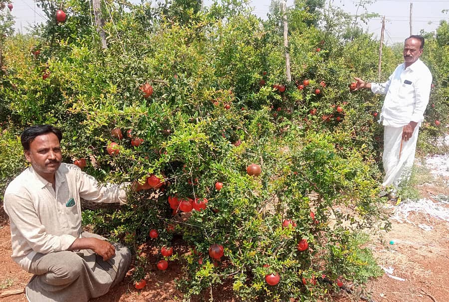 ದಾಳಿಂಬೆ ತೋಟದಲ್ಲಿ ದೊಡ್ಡಯ್ಯ ಮತ್ತು ಎಂ.ಡಿ.ಪ್ರಸನ್ನಕುಮಾರ