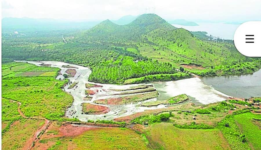ವಾಣಿವಿಲಾಸ ಜಲಾಶಯದ ಕೋಡಿ ಬಿದ್ದಾಗ ಹಸಿರು ಬೆಟ್ಟಗಳ ಇಳಿಜಾರಿನಲ್ಲಿ ನೀರು ಹರಿಯುವ ದೃಶ್ಯ (ಸಂಗ್ರಹಚಿತ್ರ).