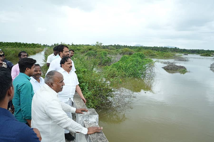 ಇದಕ್ಕೆ ಪ್ರತಿಕ್ರಿಯಿಸಿದ ಸಚಿವ ಡಿ. ಸುಧಾಕರ್, ‘ಈ ಬಗ್ಗೆ ಸಭೆ ಕರೆದು ಚರ್ಚಿಸಲಾಗುವುದು. ಸಮಗ್ರ ಸಮೀಕ್ಷೆ ಸಹ ನಡೆಸಲಾಗುವುದು. ಈಗಾಗಲೇ ತೂಬ್ ಹಾಗೂ ಮುಖ್ಯ ಗೇಟ್ ಮೂಲಕ ನೀರನ್ನು ಹೊರಹಾಕಲಾಗುತ್ತಿದೆ. ಸದ್ಯ 9,000 ಕ್ಯೂಸೆಕ್ ನೀರು ಹೊರ ಹಾಕಲಾಗಿದೆ. ಹಿನ್ನೀರು ಪ್ರದೇಶಗಳಿಗೆ ಜಲಸಂಪನ್ಮೂಲ ಇಲಾಖೆ ಅಧಿಕಾರಿಗಳು ಭೇಟಿ ನೀಡಿ ಸರ್ಕಾರಕ್ಕೆ ವರದಿ ಸಲ್ಲಿಸಿದ್ದಾರೆ. ಹಿನ್ನೀರಿನಿಂದ ಮುಳುಗಡೆಯಾಗಿರುವ ರಸ್ತೆ, ಸೇತುವೆಗಳ ಪುನರ್ ನಿರ್ಮಾಣಕ್ಕಾಗಿ ₹124 ಕೋಟಿ ಅಂದಾಜು ಪಟ್ಟಿಯನ್ನು ಶಾಸಕ ಬಿ.ಜಿ. ಗೋವಿಂದಪ್ಪ ಸಲ್ಲಿಸಿದ್ದಾರೆ. ಪರಿಹಾರಕ್ಕಾಗಿ 225 ಅರ್ಜಿಗಳನ್ನು ಸ್ವೀಕರಿಸಲಾಗಿದೆ. ಮುಖ್ಯಮಂತ್ರಿ ಹಾಗೂ ಉಪಮುಖ್ಯಮಂತ್ರಿ ಸಭೆಯಲ್ಲಿ ಈ ಬಗ್ಗೆ ಚರ್ಚಿಸಲಾಗುವುದು’ ಎಂದು ಹೇಳಿದರು.