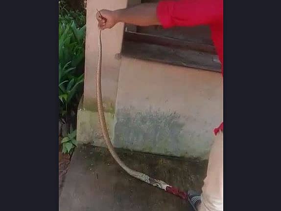 ಸ್ಥಳಕ್ಕೆ ಬಂದ ಸ್ನೇಕ್ ಅಶೋಕ್ ಹಾವಿನ ಬಾಯಿಯಿಂದ ಬಟ್ಟೆ ಹೊರತೆಗೆದು ರಕ್ಷಣೆ ಮಾಡಿ ನಂತರ ಸುರಕ್ಷಿತವಾಗಿ ಕಾಡಿಗೆ ಬಿಡುವಲ್ಲಿ ಯಶಸ್ವಿಯಾಗಿದ್ದಾರೆ.