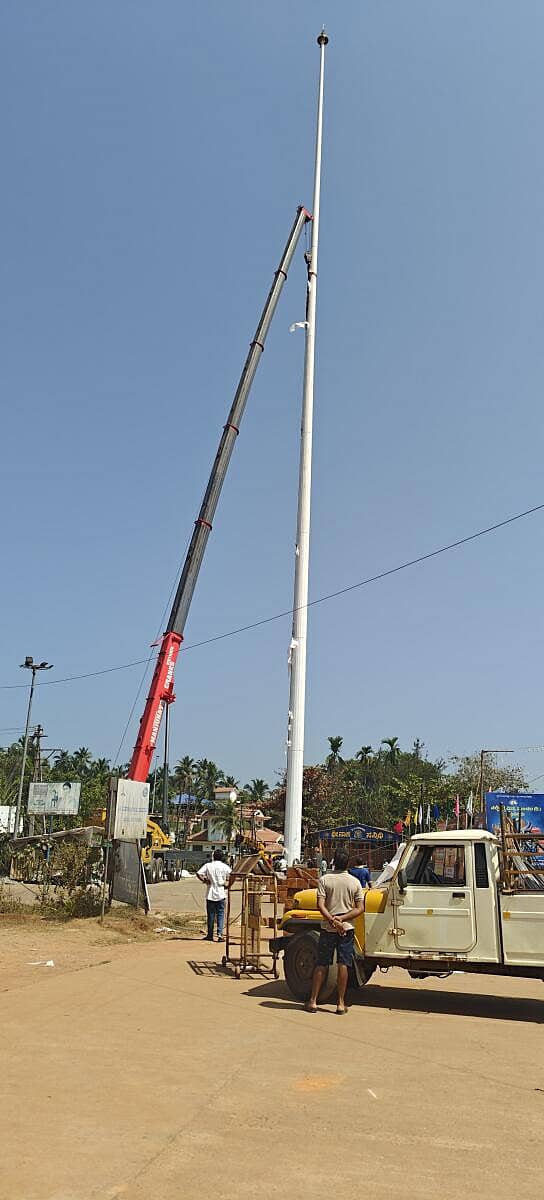80 ಮೀಟರ್ ಎತ್ತರದ ಬೃಹತ್ ರಾಷ್ಟ್ರ ಧ್ವಜಕಂಬ ಅಳವಡಿಕೆ ಕಾರ್ಯ ಭಾನುವಾರ ಬೆಳಿಗ್ಗೆ ಆರಂಭಗೊಂಡಿತು. ಬೃಹತ್ ಕ್ರೇನ್ ಮೂಲಕ ಧ್ವಜಸ್ತಂಭವನ್ನು ಅಳವಡಿಸಿ ಸಂಜೆ ಹೊತ್ತಿಗೆ ಕೆಲ ಕಾಲ ಪರೀಕ್ಷಾರ್ಥವಾಗಿ ರಾಷ್ಟ್ರದ ತ್ರಿವರ್ಣ ಧ್ವಜವನ್ನು ಹಾರಿಸಿ,ಬಳಿಕ ಇಳಿಸಲಾಯಿತು. ಧ್ವಜ ಸ್ತಂಭ ಅಳವಡಿಕೆಯ ವೇಳೆ ಶಾಸಕ ಅಶೋಕ್ಕುಮಾರ್ ರೈ ಮತ್ತಿತರರು ಉಪಸ್ಥಿತರಿದ್ದರು. ಈ ಬೃಹತ್ ಧ್ವಜ ಸ್ತಂಭ ವನ್ನು ಅಳವಡಿಸುವ ವೇಳೆ ನೂರಾರು ಮಂದಿ ಕುತೂಹಲದಿಂದ ವೀಕ್ಷಿಸಿದರು.