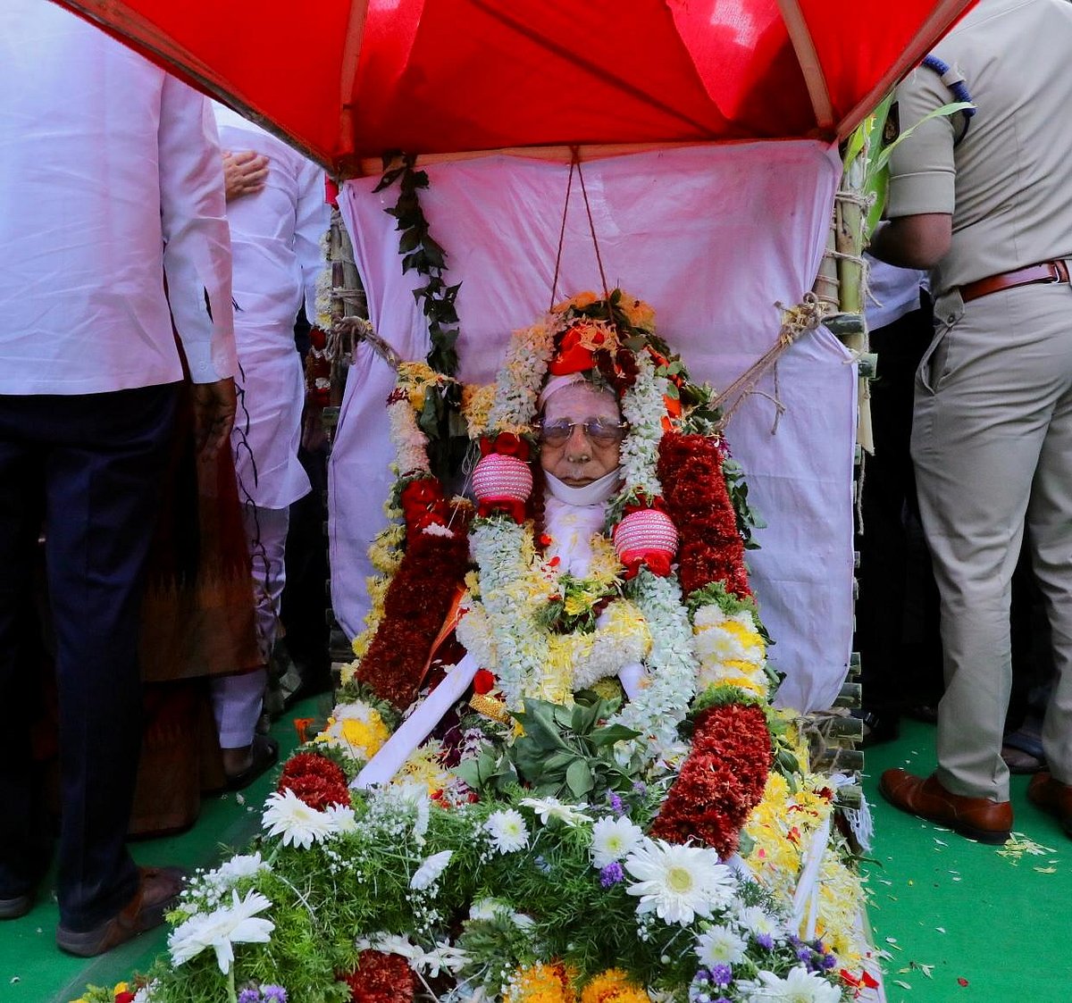 ಮುಖ್ಯಮಂತ್ರಿ ಸಿದ್ದರಾಮಯ್ಯ ಪಾರ್ಥಿವ ಶರೀರಕ್ಕೆ ಪುಷ್ಪ ನಮನ ಸಲ್ಲಿಸಿದರು.
