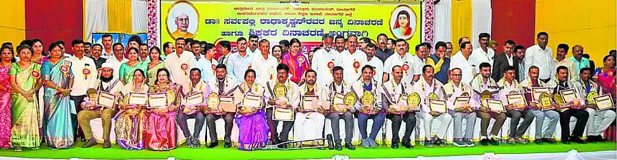 ಇಲ್ಲಿನ ಹದಡಿ ರಸ್ತೆಯ ಶಾಮನೂರು ಶಿವಶಂಕರಪ್ಪ ಸಮುದಾಯ ಭವನದಲ್ಲಿ ಶಾಲಾ ಶಿಕ್ಷಣ ಇಲಾಖೆ ವತಿಯಿಂದ ಶುಕ್ರವಾರ ಏರ್ಪಡಿಸಿದ್ದ ಸರ್ವಪಲ್ಲಿ ರಾಧಾಕೃಷ್ಣನ್ ಜನ್ಮದಿನಾಚರಣೆ ಹಾಗೂ ಶಿಕ್ಷಕರ ದಿನಾಚರಣೆ ಉದ್ಘಾಟಿಸಿ ಅವರು ಮಾತನಾಡಿದರು.