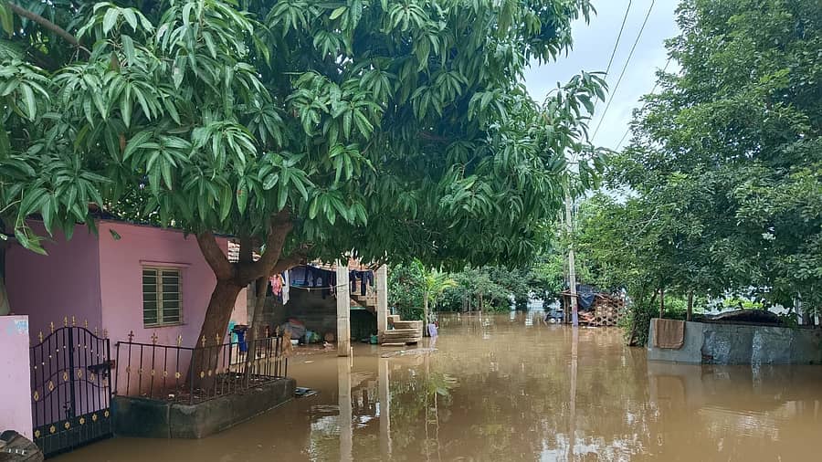 ಪಟ್ಟಣದ ರಾಘವೇಂದ್ರಸ್ವಾಮಿ ಮಠ ಸಮೀಪದ ವಿಶ್ವೇಶ್ವರ ಶಾಲೆ ಆವರಣಕ್ಕೆ ನೀರು ನುಗ್ಗಿದೆ. ಬಾಲರಾಜ್ ಘಾಟ್ನ 20 ಮನೆ ಹಾಗೂ ಬಂಬೂಬಜಾರ್ನ 6 ಮನೆಗಳು ಜಲಾವೃತಗೊಂಡಿವೆ.