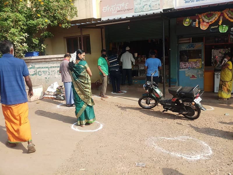 ದಿನಸಿ, ತರಕಾರಿ, ಹಾಲು, ಔಷಧಿ ಅಂಗಡಿಗಳ ಎದುರು ಮೂರು ಅಡಿ ಅಂತರ ಒಂದೊಂದು ವೃತ್ತ ಹಾಕಿ, ಅದರಲ್ಲಿಯೇ ನಿಂತು ಸರತಿ ಸಾಲಿನಲ್ಲಿ ಸಾಮಾನು ಖರೀದಿಸಲು ಸೂಚಿಸಿದ್ದಾರೆ. ಸಾರ್ವಜನಿಕರು ಮುಖಕ್ಕೆ ಮಾಸ್ಕ್ ಧರಿಸಿ, ಸಮಾಧಾನದಿಂದ ಸಾಮಾನು ಖರೀದಿಯಲ್ಲಿ ತೊಡಗಿದ್ದಾರೆ.
