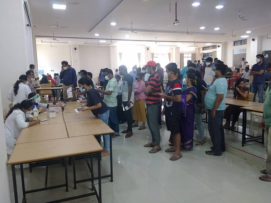 ಕಿಮ್ಸ್ನಲ್ಲಿ ಜನದಟ್ಟಣೆ ಹೆಚ್ಚಿತ್ತು. ಲಸಿಕೆ ಹಾಕಿಸಿಕೊಳ್ಳಲುಬಂದವರಿಗೆ ಕುಳಿತುಕೊಳ್ಳಲು ವ್ಯವಸ್ಥೆ ಮಾಡಲಾಗಿತ್ತು
