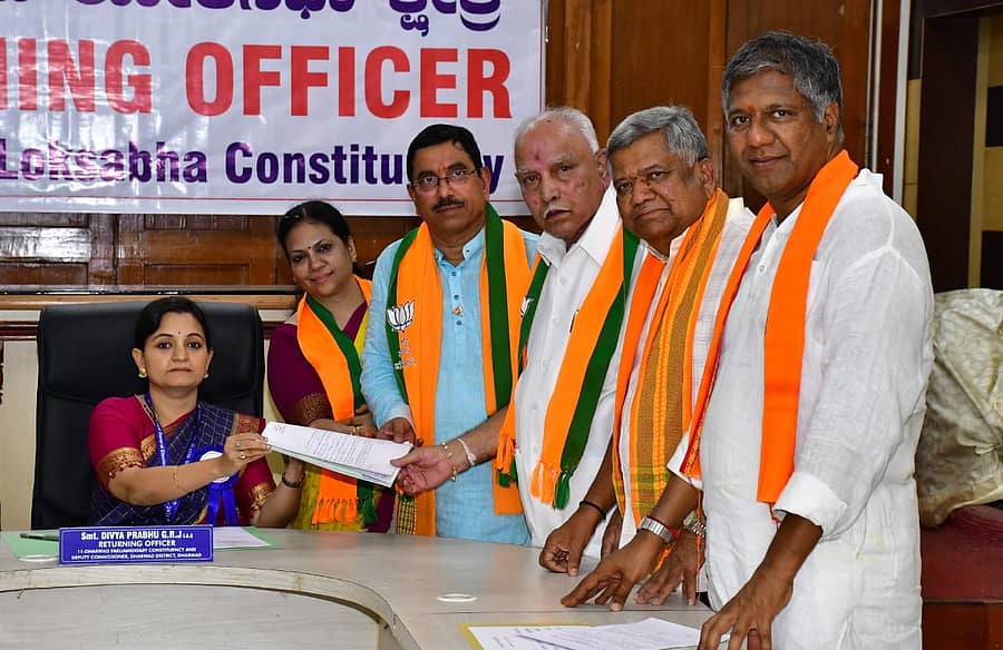 ಧಾರವಾಡ: ಧಾರವಾಡ ಲೋಕಸಭಾ ಚುನಾವಣೆ ಸೋಮವಾರ ಕೇಂದ್ರ ಸಚಿವ ಬಿಜೆಪಿಯ ಪ್ರಲ್ಹಾದ ಜೋಶಿ ಸಹಿತ ಐವರು 11 ನಾಮಪತ್ರ ಸಲ್ಲಿಸಿದ್ದಾರೆ ಎಂದು ಚುನಾವಣಾಧಿಕಾರಿ ದಿವ್ಯ ಪ್ರಭು ತಿಳಿಸಿದ್ದಾರೆ.