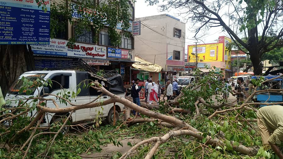 ಧಾರವಾಡದ ನಗರ ಬಸ್ ನಿಲ್ದಾಣದ (ಸಿಬಿಟಿ) ಬಳಿ ಆಲದ ಮರ ದೊಡ್ಡ ಟೊಂಗೆ ಮುರಿದು ಬಿದ್ದು ಸರಕುಸಾಗಣೆ ವಾಹನ ಮತ್ತು ಎರಡು ದ್ವಿಚಕ್ರ ವಾಹನಗಳು ಜಖಂಗೊಂಡವು. ಹುಬ್ಬಳ್ಳಿ ನಗರದಲ್ಲಿ ಸಾಧಾರಣ ಮಳೆಯಾಯಿತು.