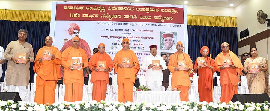 ನಗರದ ರಾಮಕೃಷ್ಣ ವಿವೇಕಾನಂದ ಆಶ್ರಮ ವತಿಯಿಂದ ಲಿಂಗಾಯತ ಭವನದಲ್ಲಿ ಶುಕ್ರವಾರ ನಡೆದ ಕರ್ನಾಟಕ ರಾಮಕೃಷ್ಣ– ವಿವೇಕಾನಂದ ಭಾವಪ್ರಚಾರ ಪರಿಷತ್ತಿನ 11ನೇ ವಾರ್ಷಿಕ ಸಮ್ಮೇಳನದ ಉದ್ಘಾಟನಾ ಸಮಾರಂಭದಲ್ಲಿ ಅವರು ಮಾತನಾಡಿದರು.