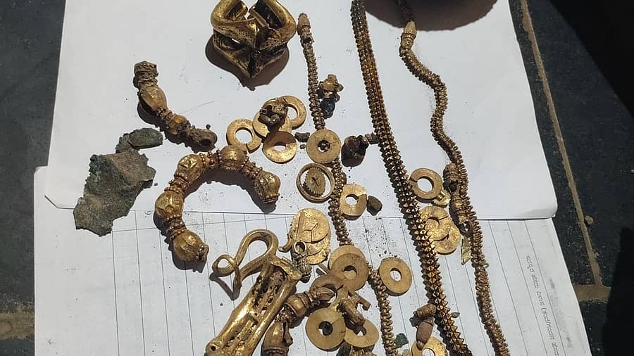 ಅಡಿಪಾಯ ತೆಗೆಯುವಾಗ ಐದಾರು ಅಡಿಯಷ್ಟು ಆಳದಲ್ಲಿ ಕೊರಳಿಗೆ ಧರಿಸುವ ಸರ, ಉಂಗುರ, ಕಡಗ ಸೇರಿದಂತೆ ಪ್ರಾಚೀನ ಕಾಲದ ವಿನ್ಯಾಸ ಹೊಂದಿರುವ ಚಿನ್ನಾಭರಣವಿದ್ದ ಬಿಂದಿಗೆ ಸಿಕ್ಕಿದೆ. ಪುರಾತತ್ವ ಇಲಾಖೆ ಅಧಿಕಾರಿಗಳಿಗೆ ಮಾಹಿತಿ ನೀಡಲಾಗಿದೆ. ತಜ್ಞರು ಅಧ್ಯಯನ ನಡೆಸಿದ ನಂತರ ಚಿನ್ನಾಭರಣಗಳು ಯಾರ ಕಾಲದ್ದು ಎಂಬುದು ಗೊತ್ತಾಗಲಿದೆ ಎಂದು ತಿಳಿಸಿದ್ದಾರೆ.