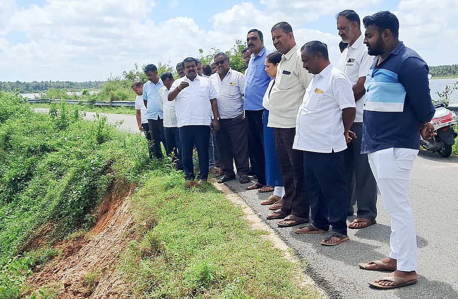 ಏರಿಯ ಮಣ್ಣು ರಸ್ತೆವರೆಗೆ ಕುಸಿದಿರುವುದರಿಂದ ಹೆಚ್ಚು ಭಾರವನ್ನು ಸಾಗಿಸುವ ಲಾರಿ ಸೇರಿದಂತೆ ಇತರೆ ದೊಡ್ಡ ವಾಹನಗಳ ಓಡಾದಂತೆ ಸೂಚನ ಫಲಕಗಳನ್ನು ಎರಡು ಕಡೆ ಹಾಕುವಂತೆ ಶಾಸಕರು ಅಧಿಕಾರಿಗಳಿಗೆ ಸೂಚಿಸಿದರು.