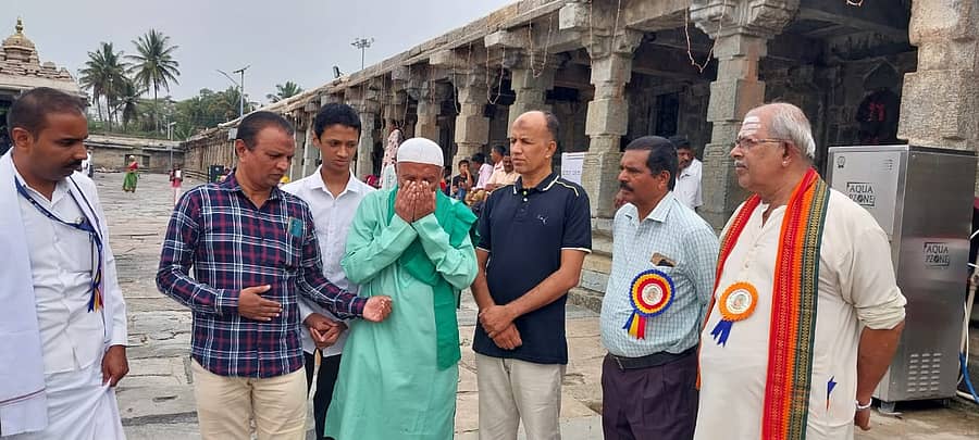 ಬೇಲೂರು: ಚನ್ನಕೇಶವಸ್ವಾಮಿ ಬ್ರಹ್ಮ ರಥೋತ್ಸವವು ಶನಿವಾರ ಸಾವಿರಾರು ಭಕ್ತರ ಸಮ್ಮುಖದಲ್ಲಿ ವಿಜೃಂಭಣೆಯಿಂದ ಜರುಗಿತು. ಈ ಬಾರಿಯೂ ದೊಡ್ಡಮೇದೂರು ಗ್ರಾಮದ ಖಾಜಿ ಸೈಯ್ಯದ್ ಸಜ್ಜಾದ್ ಬಾಷಾ ಖಾದ್ರಿಯವರು, ಕುರಾನ್ ಪಠಿಸದೇ, ಉರ್ದುವಿನಲ್ಲಿ ದೇವರಿಗೆ ಪ್ರಾರ್ಥನೆ ಸಲ್ಲಿಸಿದರು.