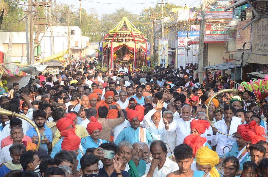 ಮೆರವಣಿಗೆಯಲ್ಲಿ ಕುಪ್ಪೇಲೂರಿನ ಸಮ್ಮಾಳ ತಂಡ, ರಾಣೆಬೆನ್ನೂರಿನ ಬ್ಯಾಂಡ್, ಇಜಾರಿಲಕ್ಮಾಪುರದ ಜಾಂಜ್ ಮೇಳ, ದಾವಣಗೇರಿಯ ನಂದಿಕೋಲು ಕುಣಿತ, ಚಂಡೆ ಕುಣಿತ, ಬೇಡರ ವೇಷ, ಅರಳೇಶ್ವರ ಡೊಳ್ಳು ಕುಣಿತ, ಹುಬ್ಬಳ್ಳಿಯ ಜಗ್ಗಲಗಿ ತಂಡ, ಗೊಂಬೆ ಆಟ, ಆನೆ ಸೇರಿದಂತೆ ಹಲವಾರು ಕಲಾ ತಂಡಗಳು ಮೆರವಣಿಗೆಗೆ ರಂಗು ತಂದವು.