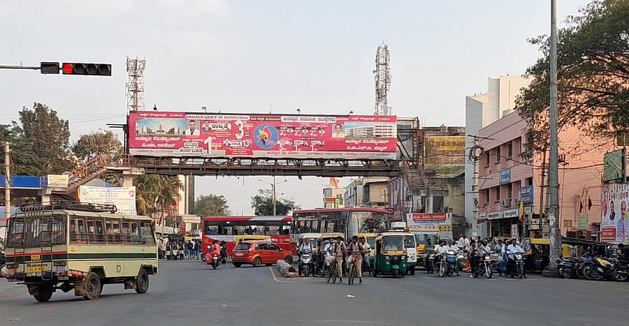 ಕಣ್ಮುಚ್ಚಿ ಕುಳಿತ ಪೊಲೀಸರು. ಬಳಕೆಯಾಗದೇ ಪಾಳುಬಿದ್ದ ಪಾದಚಾರಿ ಮೇಲ್ಸೇತುವೆ...