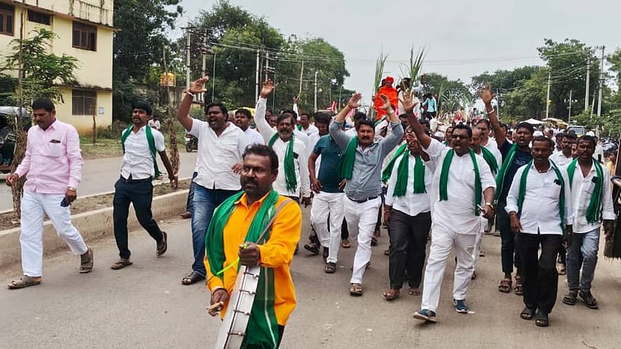 'ಕಬ್ಬು ಬೆಳೆಗಾರರಿಗೆ ತೂಕ ಮತ್ತು ಅಳತೆಯಲ್ಲಿ ಆಗುತ್ತಿರುವ ಮೋಸವನ್ನು ತಡೆಗಟ್ಟಬೇಕು. ಕಬ್ಬು ಸಾಗಿಸುವ ಟ್ರ್ಯಾಕ್ಟರ್ ಮಾಲೀಕರಿಂದ ಕಿರುಕುಳವಾಗುತ್ತಿದೆ. ಅವರು ಪ್ರತಿ ಟ್ರಿಪ್ಗೆ ಹಣ ಕೇಳುತ್ತಾರೆ. ಕಬ್ಬು ಕಟಾವು ಮಾಡುವ ಟೋಳಿಗಳು ಕಬ್ಬು ಬೆಳೆಗಾರರಿಂದ ಹಣ ವಸೂಲಿ ಮಾಡುತ್ತಿದ್ದಾರೆ. ಇದೆಲ್ಲವೂ ನಿಲ್ಲಬೇಕು' ಎಂದು ಪ್ರತಿಭಟನಾಕಾರರು ಒತ್ತಾಯಿಸಿದರು.