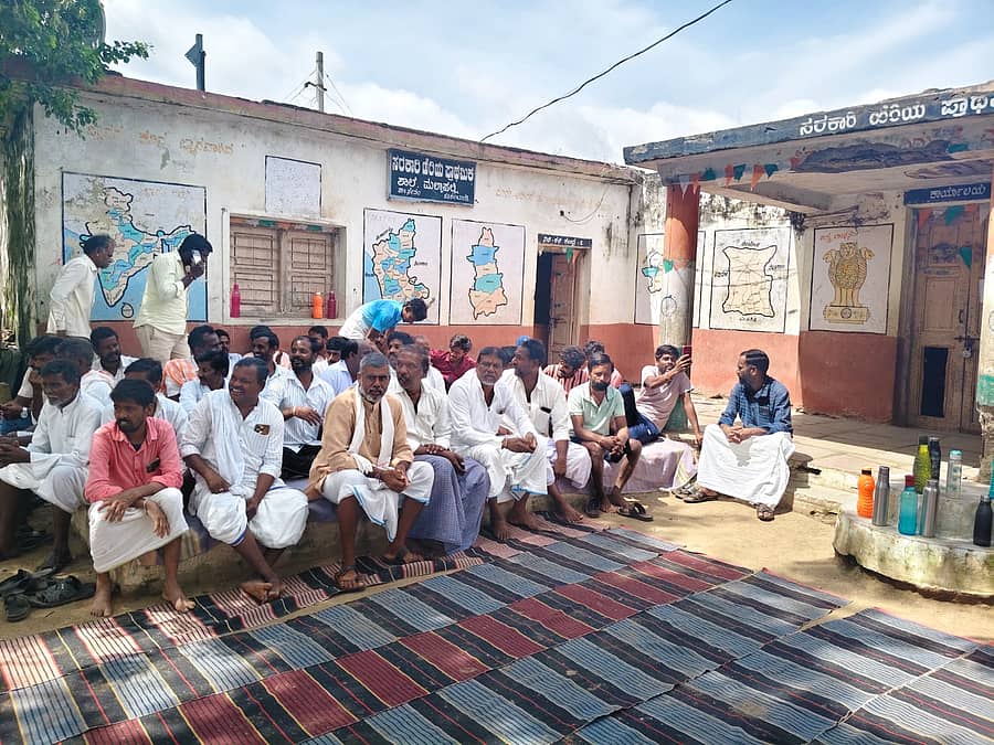 ಶಾಲೆಯನ್ನು ಹೊಸ ಕಟ್ಟಡಕ್ಕೆ ಸ್ಥಳಾಂತರಿಸಬೇಕು ಹಾಗೂ ಆ ಶಾಲಾ ಕಟ್ಟಡಕ್ಕೆ ಹೋಗಲು ಸಂಪರ್ಕ ರಸ್ತೆ ನಿರ್ಮಾಣ ಮಾಡಬೇಕು ಎಂದು ಆಗ್ರಹಿಸಿ ಗ್ರಾಮಸ್ಥರು ಶಾಲಾ ಆವರಣದಲ್ಲಿ ಜಮಖಾನೆ ಹಾಸಿ ಧರಣಿ ಕುಳಿತು ಪ್ರತಿಭಟನೆ ನಡೆಸುತ್ತಿದ್ದಾರೆ.