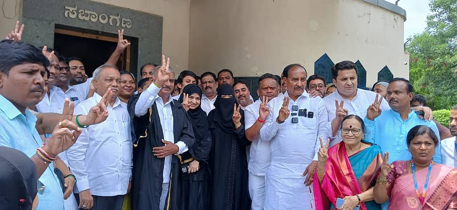 ಮೇಯರ್ ಹೆಸರು ಘೋಷಣೆಯಾಗುತ್ತಿದ್ದಂತೆ ಕಾಂಗ್ರೆಸ್ ಸದಸ್ಯರು ಪಟಾಕಿ ಸಿಡಿಸಿ ವಿಜಯೋತ್ಸವ ಆಚರಿಸಿದರು.
