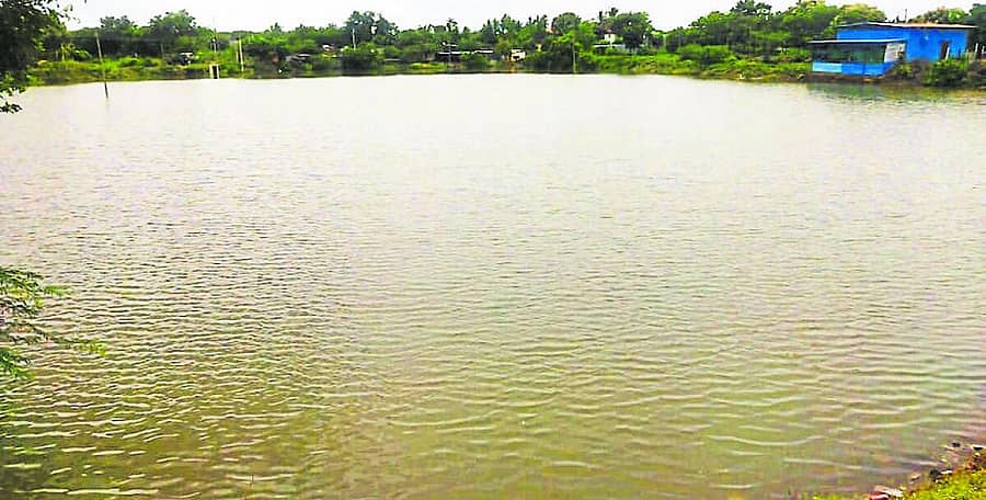 ಮಾಶಾಳ ಗ್ರಾಮದಲ್ಲಿ ನರೇಗಾ ಯೋಜನೆ ಅಡಿಯಲ್ಲಿ ನಿರ್ಮಿಸಿರುವ ಕೆರೆ ಮಳೆ ನೀರಿನಿಂದ ತುಂಬಿರುವುದು