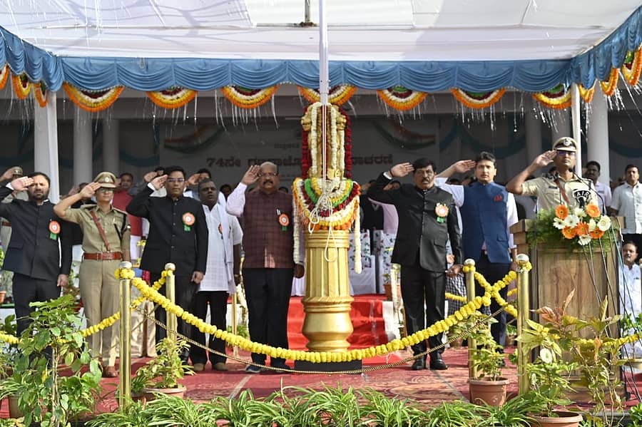 ಕಲಬುರಗಿ: ಗಣರಾಜ್ಯೋತ್ಸವದ ಅಂಗವಾಗಿ ಜಿಲ್ಲಾ ಉಸ್ತುವಾರಿ ಸಚಿವರೂ ಆದ ಬೃಹತ್ ಮತ್ತು ಮಧ್ಯಮ ಕೈಗಾರಿಕೆ ಸಚಿವ ಮುರುಗೇಶ ನಿರಾಣಿ ರಾಷ್ಟ್ರ ಧ್ವಜಾರೋಹಣ ನೆರವೇರಿಸಿದರು.