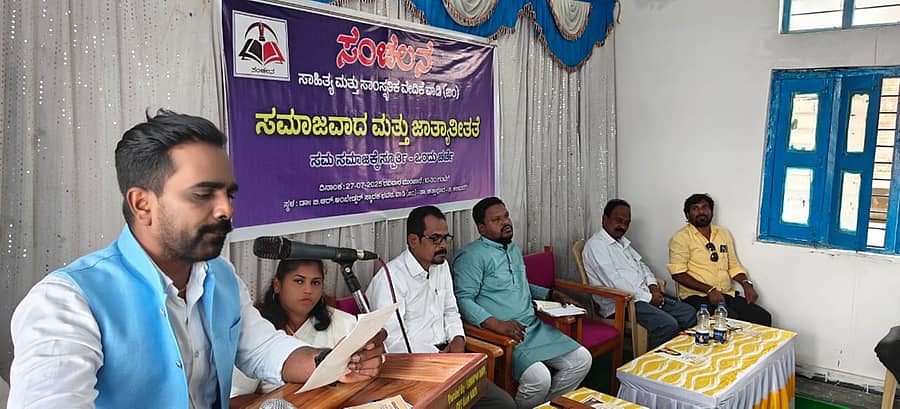 ಪಟ್ಟಣದ ಡಾ.ಬಿ.ಆರ್ ಅಂಬೇಡ್ಕರ್ ಸ್ಮಾರಕ ಭವನದಲ್ಲಿ ಭಾನುವಾರ ಸಂಚಲನ ಸಾಹಿತ್ಯ ಮತ್ತು ಸಾಂಸ್ಕೃತಿಕ ವೇದಿಕೆ ವತಿಯಿಂದ ಆಯೋಜಿಸಿದ್ದ ಸಮಾಜವಾದ ಮತ್ತು ಜಾತ್ಯಾತೀತತೆ ಕುರಿತ ಸಂವಾದ ಕಾರ್ಯಕ್ರಮದಲ್ಲಿ ಅವರು ಮಾತನಾಡಿದರು.
