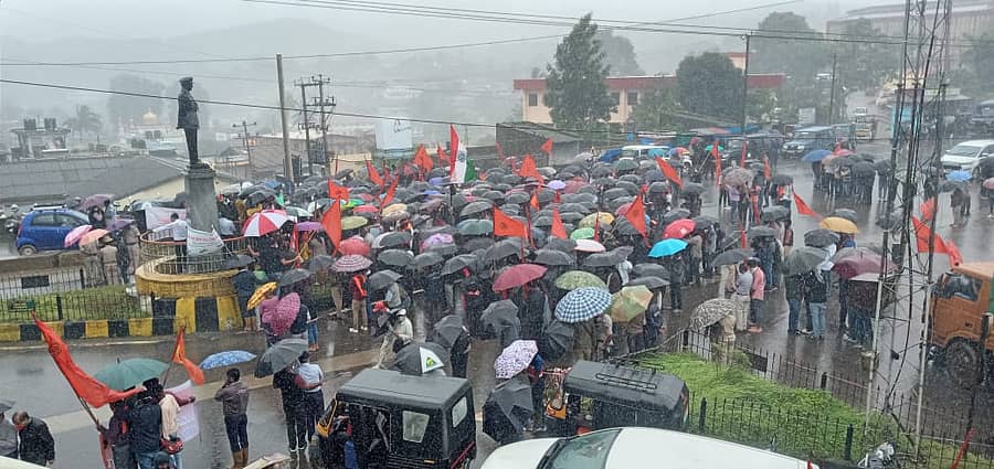ಮಡಿಕೇರಿ: ಯೋಧ ಅಶೋಕ್ ಕುಮಾರ್ ಹಾಗೂ ಅವರ ಕುಟುಂಬದ ಮೇಲೆ ಹಲ್ಲೆ ಖಂಡಿಸಿ, ನಗರದಲ್ಲಿ ಶುಕ್ರವಾರ ಮಾಜಿ ಸೈನಿಕರ ಸಂಘದ ನೇತೃತ್ವದಲ್ಲಿ ಬೃಹತ್ ಪ್ರತಿಭಟನೆ ನಡೆಯುತ್ತಿದೆ. ಪ್ರತಿಭಟನೆಗೆ ಎಬಿವಿಪಿ ಹಾಗೂ ಹಿಂದೂ ಜಾಗರಣಾ ವೇದಿಕೆಯು ಬೆಂಬಲ ಸೂಚಿಸಿದೆ. ನೂರಾರು ಸಂಖ್ಯೆಯಲ್ಲಿ ಪ್ರತಿಭಟನಾಕಾರರು ಜಮಾಯಿಸಿದ್ದಾರೆ.