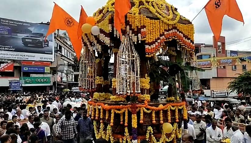 ಸಾಂಪ್ರದಾಯಿಕ ಪೂಜಾ ವಿಧಿ ಬಳಿಕ ಆರಂಭವಾದ ರಥೋತ್ಸವವು ಗಣಪತಿ ದೇವಾಲಯದಿಂದ ಆಂಜನೇಯ ದೇವಾಲಯದವರೆಗೆ ಜರುಗಿತು.