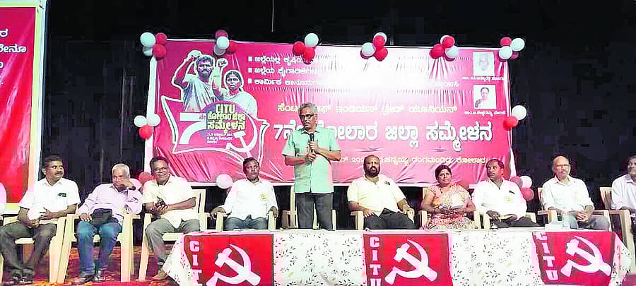 ನಗರದ ಟಿ.ಚನ್ನಯ್ಯ ರಂಗಮಂದಿರದಲ್ಲಿ ಭಾನುವಾರ ಸಿಐಟಿಯು7 ನೇ ಜಿಲ್ಲಾ ಸಮ್ಮೇಳನದ ಸಮಾರೋಪ ಸಮಾರಂಭದಲ್ಲಿ ಅವರು ಮಾತನಾಡಿದರು.