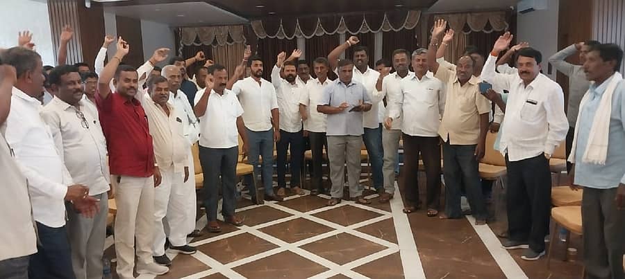 ನಗರದ ಹೊರವಲಯದ ಆರಾಧ್ಯ ಹೋಟೆಲ್ನಲ್ಲಿ ಸೋಮವಾರ ಸಭೆ ನಡೆಸಿದ ಮುಖಂಡರು, ‘ಮಂಗಳವಾರ ಬೆಳಿಗ್ಗೆ 11 ಗಂಟೆಗೆ ಸಿದ್ದರಾಮಯ್ಯ ಮನೆ ಮುಂದೆ ಸೇರಬೇಕು. ಕ್ಷೇತ್ರದ ಪ್ರತಿ ಬೂತ್ನಿಂದ ಕನಿಷ್ಠ 25 ಜನರು ಬರಬೇಕು. ಐದು ಸಾವಿರಕ್ಕೂ ಹೆಚ್ಚು ಜನ ಸೇರಬೇಕು’ ಎಂದರು.