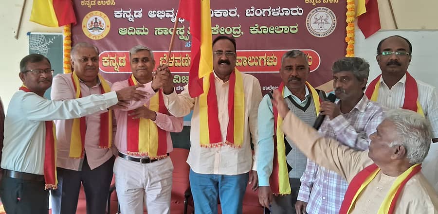 ಆದಿಮ ಸಾಂಸ್ಕೃತಿಕ ಕೇಂದ್ರದ ಕಾರ್ಯದರ್ಶಿ ಹ.ಮಾ.ರಾಮಚಂದ್ರ ಚಳವಳಿಗಳು ಮತ್ತು ಭಾಷಾ ಪ್ರಾಧಾನ್ಯ ಕುರಿತು ಮಾತನಾಡಿದರು. ಸರ್ಕಾರಿ ಪ್ರಥಮದರ್ಜೆ ಕಾಲೇಜಿನ ಪ್ರಾಂಶುಪಾಲ ಮುನಿಶಾಮಪ್ಪ ಆಶಯ ನುಡಿಗಳನ್ನಾಡಿದರು. ಮುಖ್ಯ ಅತಿಥಿಗಳಾಗಿ ಕಸಾಪ ಜಿಲ್ಲಾಧ್ಯಕ್ಷ ಎನ್.ಬಿ.ಗೋಪಾಲಗೌಡ ಭಾಗವಹಿಸಿದ್ದರು.