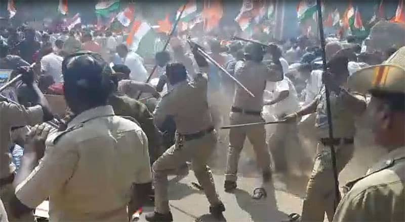 ಈ ಹಂತದಲ್ಲಿ ಪರಸ್ಪರ ವಾಗ್ವಾದ ನಡೆದು ಸ್ಥಳದಲ್ಲಿ ಆತಂಕದ ವಾತಾವರಣ ಸೃಷ್ಟಿಯಾಯಿತು. ಪರಿಸ್ಥಿತಿ ಕೈಮೀರುತ್ತಿರುವುದನ್ನು ಮನಗಂಡ ಪೊಲೀಸರು ಲಾಠಿ ಪ್ರಹಾರ ನಡೆಸಿದರು. ಪೊಲೀಸರ ಲಾಠಿ ಏಟಿನಿಂದ ತಪ್ಪಿಸಿಕೊಳ್ಳಲು ಕಾರ್ಯಕರ್ತರು ದಿಕ್ಕಾಪಾಲಾಗಿ ಓಡಿದ್ದರಿಂದ ನೂಕುನುಗ್ಗಲು ಉಂಟಾಗಿ ಹಲವರು ಕೆಳಗೆ ಬಿದ್ದು ಗಾಯಗೊಂಡರು. ಘಟನೆಯಲ್ಲಿ 3 ಮಂದಿ ಪೊಲೀಸ್ ಸಿಬ್ಬಂದಿಯೂ ಗಾಯಗೊಂಡರು.