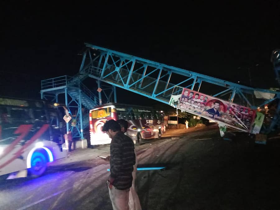 ಕೊಂಡರಾಜನಹಳ್ಳಿ ಆಂಜನೇಯ ದೇಗುಲ ಬಳಿ ಜಾರ್ಖಂಡ್ ರಾಜ್ಯದ ಟ್ರಕ್ ಗುದ್ದಿ ಈ ಸ್ಕೈವಾಕ್ ಮಧ್ಯದಲ್ಲಿ ತುಂಡಾಗಿದೆ ಎಂದು ಕೆಲ ಪ್ರತ್ಯಕ್ಷದರ್ಶಿಗಳು ಹೇಳಿದ್ದಾರೆ.