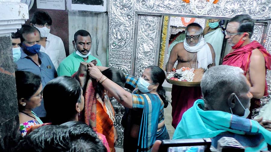 ಜಿಲ್ಲೆಗೆ ಮುಜರಾಯಿ ಇಲಾಖೆ ಸಚಿವರಾಗಿ ಮೊದಲಬಾರಿಗೆ ಬಂದ ಜೊಲ್ಲೆಯವರನ್ನು ಪೂರ್ಣಕುಂಭದೊಂದಿಗೆ ಸ್ವಾಗತಿಸಲಾಯಿತು. ದೇವಿಗೆ ವಿಶೇಷ ಪೂಜೆ ಸಲ್ಲಿಸಿದರು.