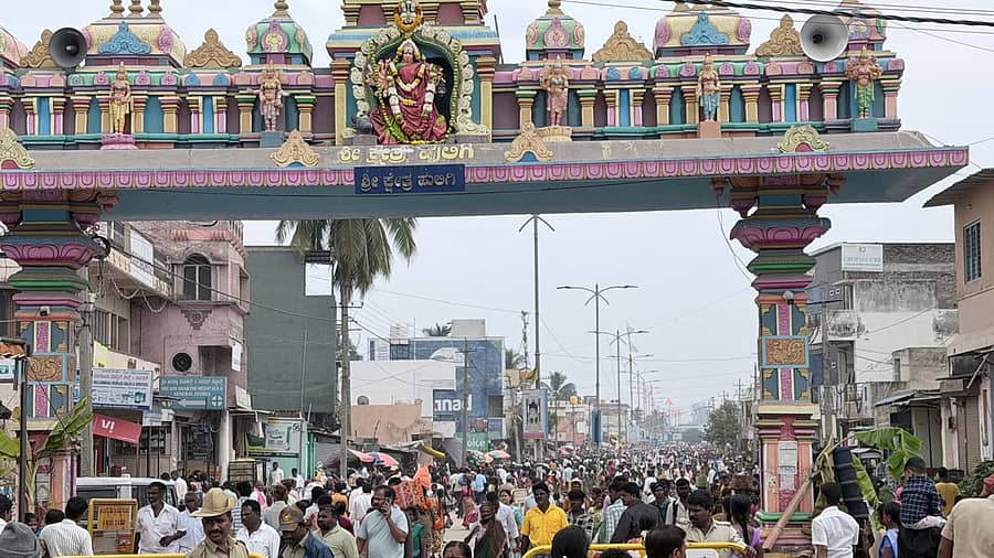 ಕೊಪ್ಪಳ: ಒಂದೆಡೆ ಕೊರೆಯುವ ಚಳಿ, ಮತ್ತೊಂದೆಡೆ ತುಂತುರು ಮಳೆಯ ಸಿಂಚನದ ನಡುವೆ ತಾಲ್ಲೂಕಿನ ಹುಲಿಗಿಯ ಹುಲಿಗೆಮ್ಮ ದೇವಿ ಸನ್ನಿಧಿಗೆ ಗುರುವಾರ ಲಕ್ಷಾಂತರ ಭಕ್ತರು ಭೇಟಿ ನೀಡಿದರು.