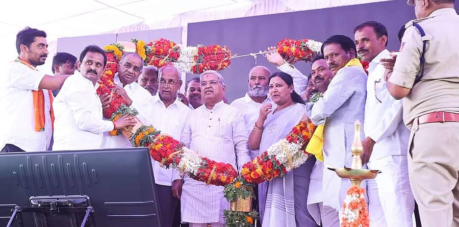 ಹಾಲಪ್ಪ ಮಾತು ಮುಂದುವರಿಸಿದರೂ ಅವರ ಬಳಿ ಬಂದು ಕಾರಜೋಳ ಭಾಷಣ ಆರಂಭಿಸಿದರು. ‘3.25 ಲಕ್ಷ ಎಕರೆಗೆ ನೀರಾವರಿ ಮಾಡಿದ್ದು ನಮ್ಮ ಬಿಜೆಪಿ ಸರ್ಕಾರ. ಇದಕ್ಕಾಗಿ ₹3 ಸಾವಿರ ಕೋಟಿ ಖರ್ಚು ಮಾಡಿದ್ದೇವೆ. ಹಿಂದೆ ಕಾಂಗ್ರೆಸ್ ನಮ್ಮ ನಡಿಗೆ ಕೃಷ್ಣೆಗೆ ಕಡೆ ಎಂದು ಪಾದಯಾತ್ರೆ ಮಾಡಿತ್ತು. ಆದರೂ ಒಂದು ಹನಿ ನೀರು ತರಲಿಲ್ಲ. ಕಾಂಗ್ರೆಸ್ನಿಂದ ಸಂಪೂರ್ಣ ನಿರ್ಲಕ್ಷ್ಯಕ್ಕೆ ಒಳಗಾಗಿದ್ದ ಈ ಯೋಜನೆಯನ್ನು ನಮ್ಮ ಸರ್ಕಾರ ಮಾಡಿದೆ. ಹಾಲಪ್ಪ ಆಚಾರ್ ಮಾಡಿದ್ದಾರೆ’ ಎಂದು ಕಾರಜೋಳ ಹೇಳಿದರು.