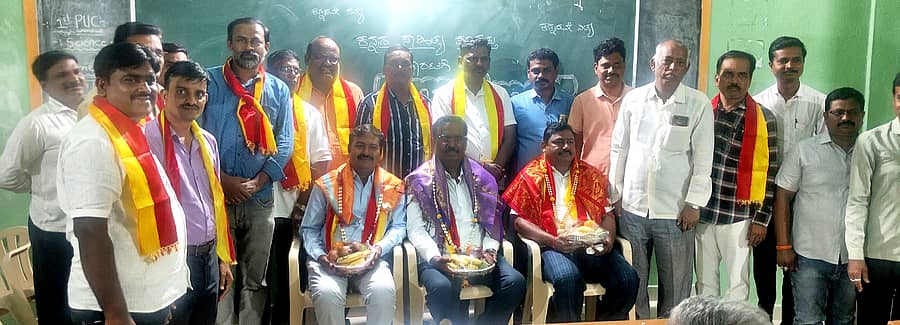 ಪಟ್ಟಣದ ಕರ್ನಾಟಕ ಪಬ್ಲಿಕ್ ಶಾಲೆ ಆವರಣದಲ್ಲಿ ಕನ್ನಡ ಸಾಹಿತ್ಯ ಪರಿಷತ್ ತಾಲ್ಲೂಕು ಘಟಕ ಭಾನುವಾರ ಟ್ರಸ್ಟ್ಗೆ ನೇಮಕಗೊಂಡ ಸದಸ್ಯರಿಗೆ, ನಿವೃತ್ತ ಪ್ರಾಚಾರ್ಯರನ್ನು ಸನ್ಮಾನಿಸುವ ಕಾರ್ಯಕ್ರಮದಲ್ಲಿ ಮಾತನಾಡಿದರು.