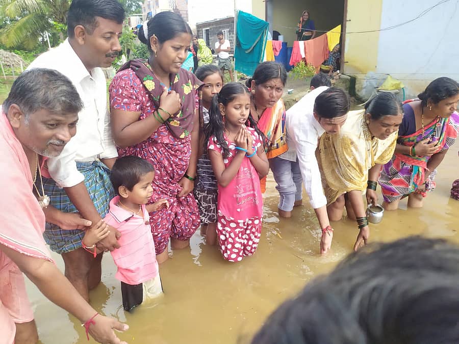 ಕೊಪ್ಪಳ: ಜಿಲ್ಲೆಯಾದ್ಯಂತ ಮಳೆಯಾಗುತ್ತಿರುವ ಕಾರಣ ತಾಲ್ಲೂಕಿನ ಹಳೆ ಗೊಂಡಬಾಳ ಗ್ರಾಮದಲ್ಲಿ ಮುತೈದೆಯರು ಮಂಗಳವಾರ ಗಂಗೆಗೆ ವಿಶೇಷ ಪೂಜೆ ಸಲ್ಲಿಸಿದರು. ‘ನಮ್ಮೂರಿಗೆ ಬಂದು ಹಾನಿ ಪಡಿಸಬೇಡ; ಸಾಕು ಮುಂದೆ ಹೋಗು’ ಎಂದು ಪ್ರಾರ್ಥಿಸಿಕೊಂಡರು.