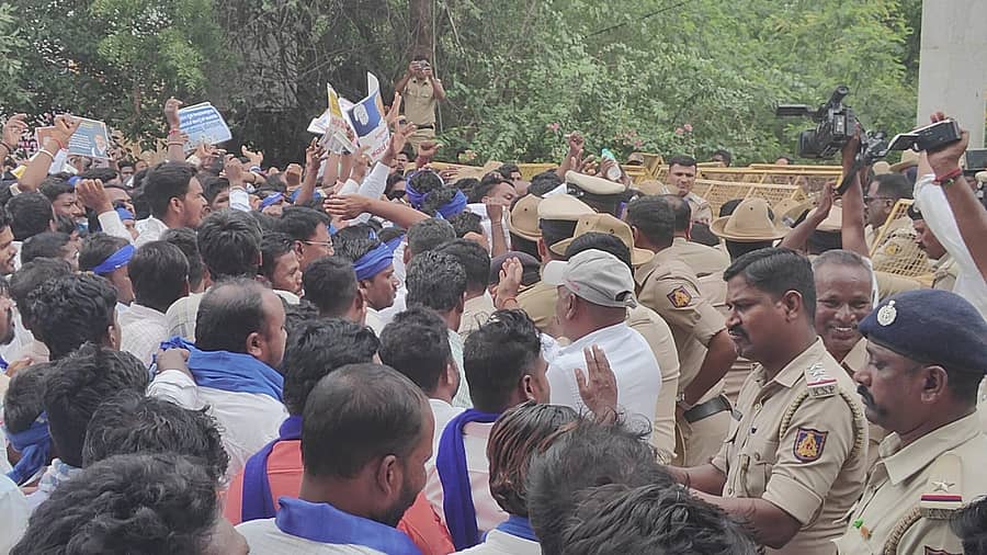 ಈ ವೇಳೆ ಸಮುದಾಯದ ಮುಖಂಡರು ಹಾಗೂ ಪೊಲೀಸರ ನಡುವೆ ವಾಗ್ವಾಗ ಹಾಗೂ ಜಟಾಪಟಿ ನಡೆಯಿತು. ಪೊಲೀಸರು ದೌರ್ಜನ್ಯ ಮಾಡುತ್ತಿದ್ದಾರೆ ಎಂದು ಆರೋಪಿಸಿ ಹೋರಾಟಗಾರರು ಘೋಷಣೆಗಳನ್ನು ಕೂಗಿದರು.