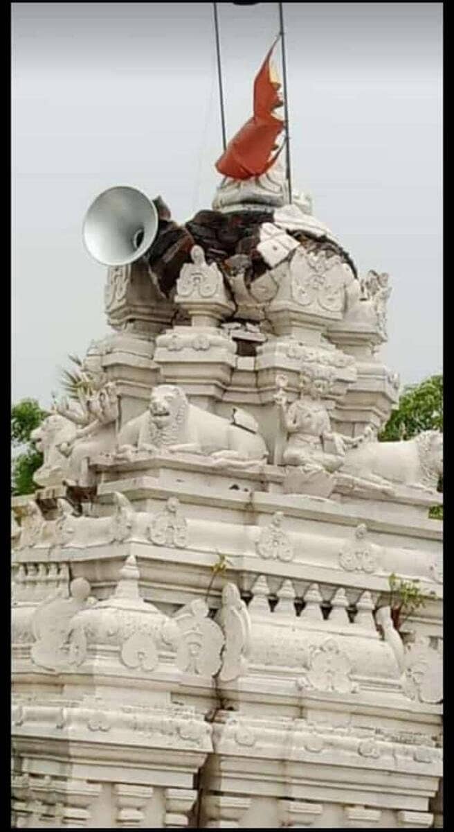 ಕನಕಗಿರಿ (ಕೊಪ್ಪಳ ಜಿಲ್ಲೆ): ಸಿಡಿಲು ಬಡಿದು ದೇವಸ್ಥಾನದ ಗೋಪುರ ಬಿರುಕು ಬಿಟ್ಟ ಘಟನೆ ಸಮೀಪದ ನವಲಿ ತಾಂಡದಲ್ಲಿ ಶನಿವಾರ ನಡೆದಿದೆ. ತಾಂಡಾದಲ್ಲಿ ಗುಡುಗು, ಸಿಡಿಲು ಸಹಿತ ಮಳೆ ಸುರಿದಿದೆ.