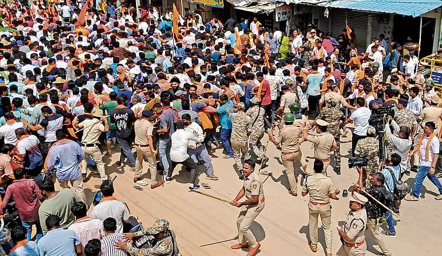 ಕಲ್ಲು ತೂರಾಟ ಕೃತ್ಯ ಖಂಡಿಸಿ ಬಿಜೆಪಿ, ಬಜರಂಗದಳ ಕಾರ್ಯಕರ್ತರು ಸೋಮವಾರ ನಡೆಸಿದ ಪ್ರತಿಭಟನೆ ವೇಳೆ ಕೆಲವರು ಮಸೀದಿಯತ್ತ ಕಲ್ಲು ತೂರಿ ಆಕ್ರೋಶ ವ್ಯಕ್ತಪಡಿಸಿದ್ದು, ಗುಂಪು ಚದುರಿಸಲು ಪೊಲೀಸರು ಲಘು ಲಾಠಿ ಪ್ರಹಾರ ನಡೆಸಿದರು. ಪೊಲೀಸರ ಜೊತೆಗೆ ವಾಗ್ವಾದವು ನಡೆಯಿತು.