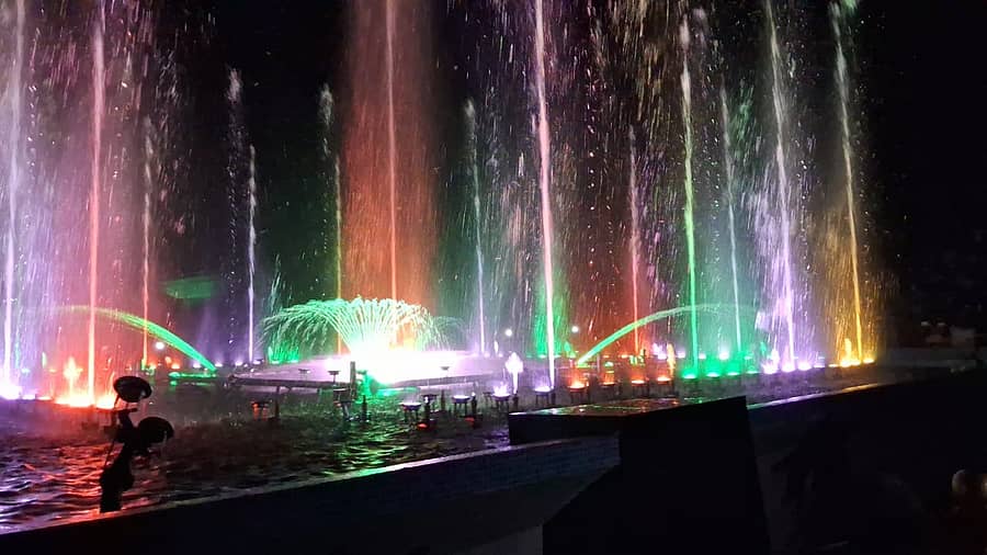 ಆಕರ್ಷಕ ವಿದ್ಯುತ್ ದೀಪಗಳ ಬೆಳಕಿನಲ್ಲಿ, ನೀರಿನ ಬುಗ್ಗೆಗಳ ಲಾಸ್ಯ ಗಮನ ಸೆಳೆಯಿತು.