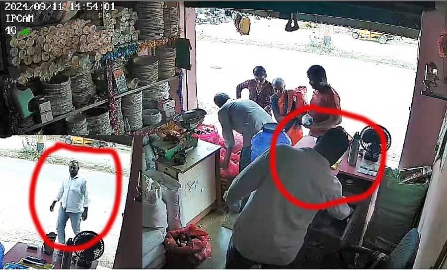 ಅಂಗಡಿಯ ಒಳಗೆ ಕುಳಿತಿದ್ದ ಮಾಲೀಕರು ಮುಂದೆ ಬಂದು ಈರುಳ್ಳಿ ಬೆಲೆಯನ್ನು ತಿಳಿಸುತ್ತಿದ್ದಂತೆ, ಒಬ್ಬ ಕಳ್ಳ ಅಂಗಡಿಯ ಒಳಗೆ ಬರುತ್ತಾನೆ. ಅಷ್ಟರಲ್ಲಿ ಈರುಳ್ಳಿ ಖರೀದಿಸಲು ಮತ್ತಿಬ್ಬರು ಗ್ರಾಹಕರು ಅಂಗಡಿಗೆ ಬಂದ ಸಂದರ್ಭ ಬಳಸಿಕೊಂಡ ಒಳಗಿದ್ದ ಕಳ್ಳ, ನಗದು ಬಾಕ್ಸ್ ತೆಗೆದು ಅದರಲ್ಲಿದ್ದ ಹಣವನ್ನು ದೋಚಿ ಮತ್ತೊಬ್ಬನೊಂದಿಗೆ ಪರಾರಿಯಾಗಿದ್ದಾನೆ.