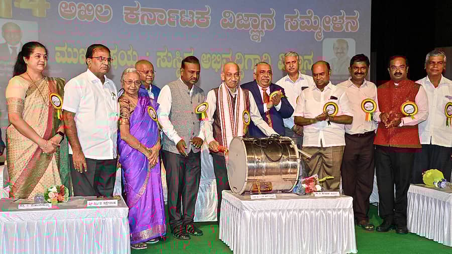 ಕರ್ನಾಟಕ ರಾಜ್ಯ ವಿಜ್ಞಾನ ಪರಿಷತ್ತು (ಕೆಆರ್ವಿಪಿ) ವತಿಯಿಂದ ವಿಜ್ಞಾನ ಮತ್ತು ತಂತ್ರಜ್ಞಾನ ಇಲಾಖೆ, ಕರ್ನಾಟಕ ವಿಜ್ಞಾನ ಮತ್ತು ತಂತ್ರಜ್ಞಾನ ಪ್ರೋತ್ಸಾಹಕ ಸೊಸೈಟಿ, ಜಿ.ಪಂ., ಜಿಲ್ಲಾಡಳಿತ, ಕೆಎಸ್ಒಯು ಹಾಗೂ ಮೈಸೂರು ವಿಶ್ವವಿದ್ಯಾಲಯ ಸಹಯೋಗದಲ್ಲಿ ನಗರದ ಕೆಎಸ್ಒಯು ಘಟಿಕೋತ್ಸವ ಭವನದಲ್ಲಿ ಸೆ.10ರವರೆಗೆ ಹಮ್ಮಿಕೊಂಡಿರುವ ‘14ನೇ ಅಖಿಲ ಕರ್ನಾಟಕ ವಿಜ್ಞಾನ ಸಮ್ಮೇಳನ’ದ ಉದ್ಘಾಟನಾ ಸಮಾರಂಭದಲ್ಲಿ ಸರ್ವಾಧ್ಯಕ್ಷ ಸ್ಥಾನದಿಂದ ಅವರು ಮಾತನಾಡಿದರು.