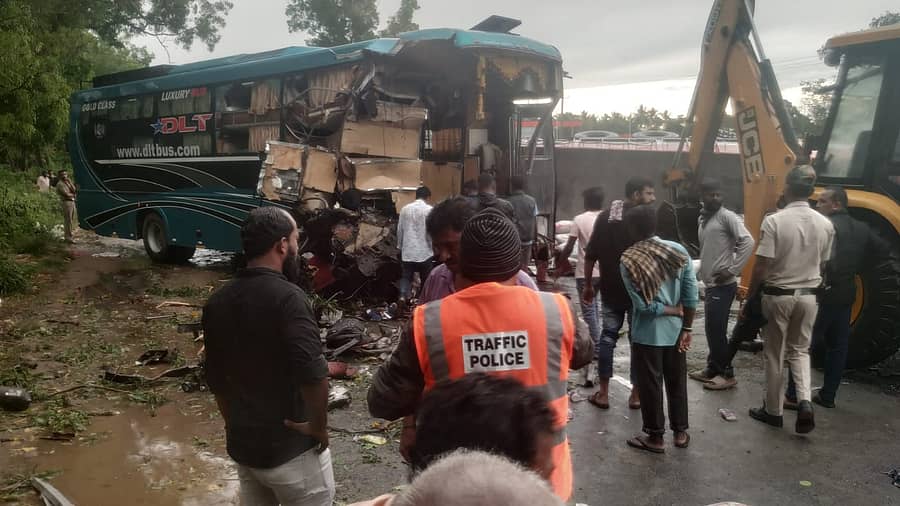 ಬಸ್ ಚಾಲಕ ಸಂಶದ್ ಹಾಗೂ ಕ್ಲೀನರ್ ದಿನೇಶ್ ಮೃತಪಟ್ಟವರು.