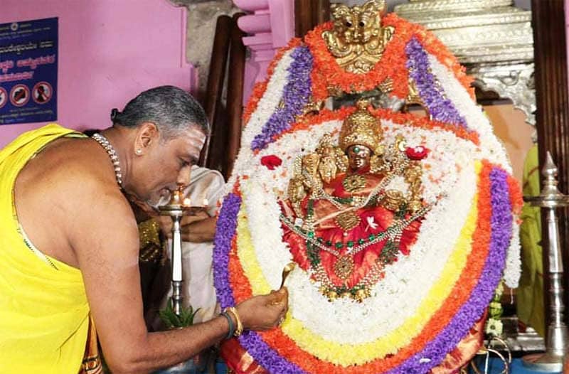 ದೇಗುಲದ ಪ್ರಧಾನ ಅರ್ಚಕ ಶಶಿಶೇಖರ ದೀಕ್ಷಿತ ಅವರ ನೇತೃತ್ವದಲ್ಲಿ ನಸುಕಿನ 4 ಗಂಟೆಯಿಂದಲೇ ಧಾರ್ಮಿಕ ಕೈಂಕರ್ಯಗಳು ಆರಂಭವಾದವು. ದೇಗುಲದ ಹೊರ ಆವರಣದಲ್ಲಿ ಮೆರವಣಿಗೆ ನಡೆಯಿತು.