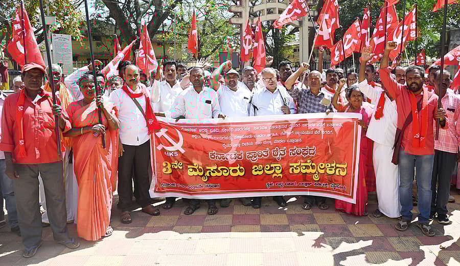 ಮೈಸೂರು: ಗೋಮಾಳ, ಅರಣ್ಯ ಭೂಮಿ ಹಾಗೂ ಸರ್ಕಾರಿ ಜಾಗಗಳಲ್ಲಿ ಸಾಗುವಳಿ ಮಾಡುತ್ತಿರುವ ರೈತರಿಗೆ ‘ಸಾಗುವಳಿ ಪತ್ರ’ ನೀಡುವಂತೆ ಕರ್ನಾಟಕ ಪ್ರಾಂತ ರೈತ ಸಂಘ(ಎಐಕೆಎಸ್)ದ 3ನೇ ಜಿಲ್ಲಾ ಸಮ್ಮೇಳನ ಹಕ್ಕೊತ್ತಾಯ ಮಂಡಿಸಿತು.