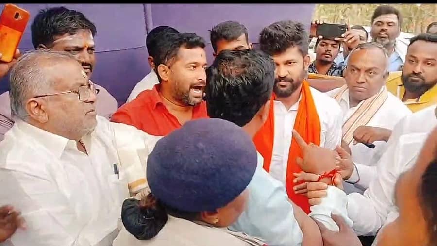 ಶ್ರೀವತ್ಸ, ವಿಧಾನ ಪರಿಷತ್ ಸದಸ್ಯ ಸಿ.ಎನ್.ಮಂಜೇಗೌಡ, ಮುಖಂಡ ಸಾ.ರಾ ಮಹೇಶ್, ದಲಿತ ಮುಖಂಡರನ್ನು ಮನವೊಲಿಸಲು ಮುಂದಾದರು. ಬಹು ಸಂಖ್ಯೆಯಲ್ಲಿ ನೆರೆದಿದ್ದ ದಲಿತ ಮುಖಂಡರು ಪ್ರತಾಪ್ ಸಿಂಹ ಅವರಿಗೆ ಧಿಕ್ಕಾರ ಕೂಗಿದರು. ಘೇರಾವ್ ಹಾಕಿದರು. ಪೂಜಾ ಕಾರ್ಯಕ್ರಮಕ್ಕೆ ಬರದಂತೆ ಅಡ್ಡಗಟ್ಟಿದರು. ಸ್ಥಳದಲ್ಲಿ ಬಿಗುವಿನ ವಾತಾವರಣ ನಿರ್ಮಾಣವಾಗಿತ್ತು. ಮರು ಮಾತನಾಡದ ಸಂಸದ ಪ್ರತಾಪಸಿಂಹ ಸ್ಥಳದಿಂದ ಕಾರಿನಲ್ಲಿ ತೆರಳಿದರು.