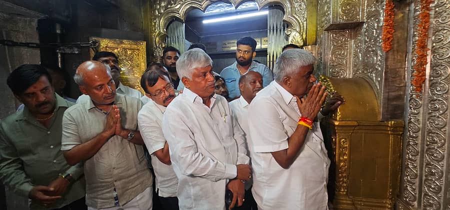 ಮೈಸೂರು: ಹೊಳೆ ನರಸೀಪುರ ಶಾಸಕ ಎಚ್.ಡಿ. ರೇವಣ್ಣ ಮಂಗಳವಾರ ಜೈಲಿನಿಂದ ಹೊರಬಂದ ಬೆನ್ನಲ್ಲೇ ಇಲ್ಲಿನ ಚಾಮುಂಡಿ ಬೆಟ್ಟಕ್ಕೆ ಭೇಟಿ ನೀಡಿ, ದೇವಿಯ ಸನ್ನಿಧಿಯಲ್ಲಿ ಪೂಜೆ ಸಲ್ಲಿಸಿದರು.