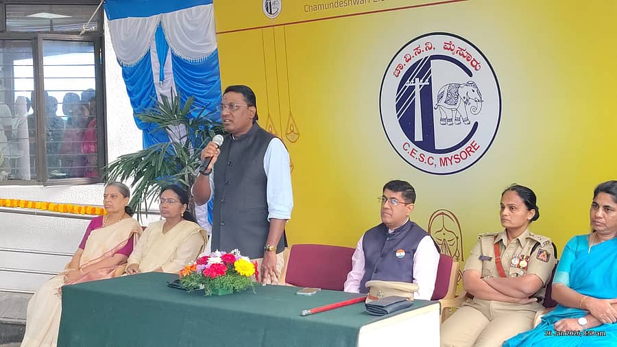 ಇಲ್ಲಿನ ವಿಜಯನಗರದ ‘ಸೆಸ್ಕ್’ ಪ್ರಧಾನ ಕಚೇರಿಯಲ್ಲಿ ಸೋಮವಾರ ನಡೆದ ಗಣರಾಜ್ಯೋತ್ಸವದಲ್ಲಿ ಧ್ವಜಾರೋಹಣ ನೆರವೇರಿಸಿ ಅವರು ಮಾತನಾಡಿದರು.