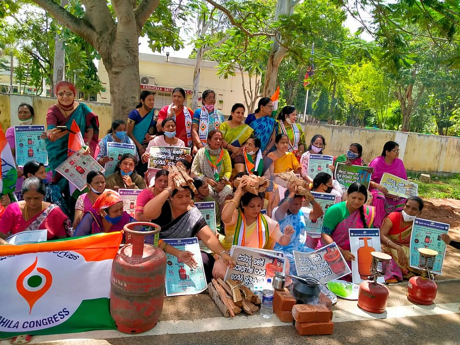 ಕೆಪಿಸಿಸಿ ವಕ್ತಾರರಾದ ಮಂಜುಳಾ ಮಾನಸ ಮಾತನಾಡಿ, ‘ಅಡುಗೆ ಅನಿಲದ ದರ ಏರಿಕೆ ಸ್ಥಿತಿ ನೋಡಿದರೆ ಇದು ಕೆಲವೇ ದಿನಗಳಲ್ಲಿ ₹ 1 ಸಾವಿರ ದಾಟುವ ನಿರೀಕ್ಷೆ ಇದೆ. ಈಗಾಗಲೇ ಪೆಟ್ರೋಲ್, ಡೀಸೆಲ್ ಬೆಲೆಗಳು ಶತಕ ದಾಟಿವೆ’ ಎಂದು ಅಸಮಾಧಾನ ವ್ಯಕ್ತಪಡಿಸಿದರು.
